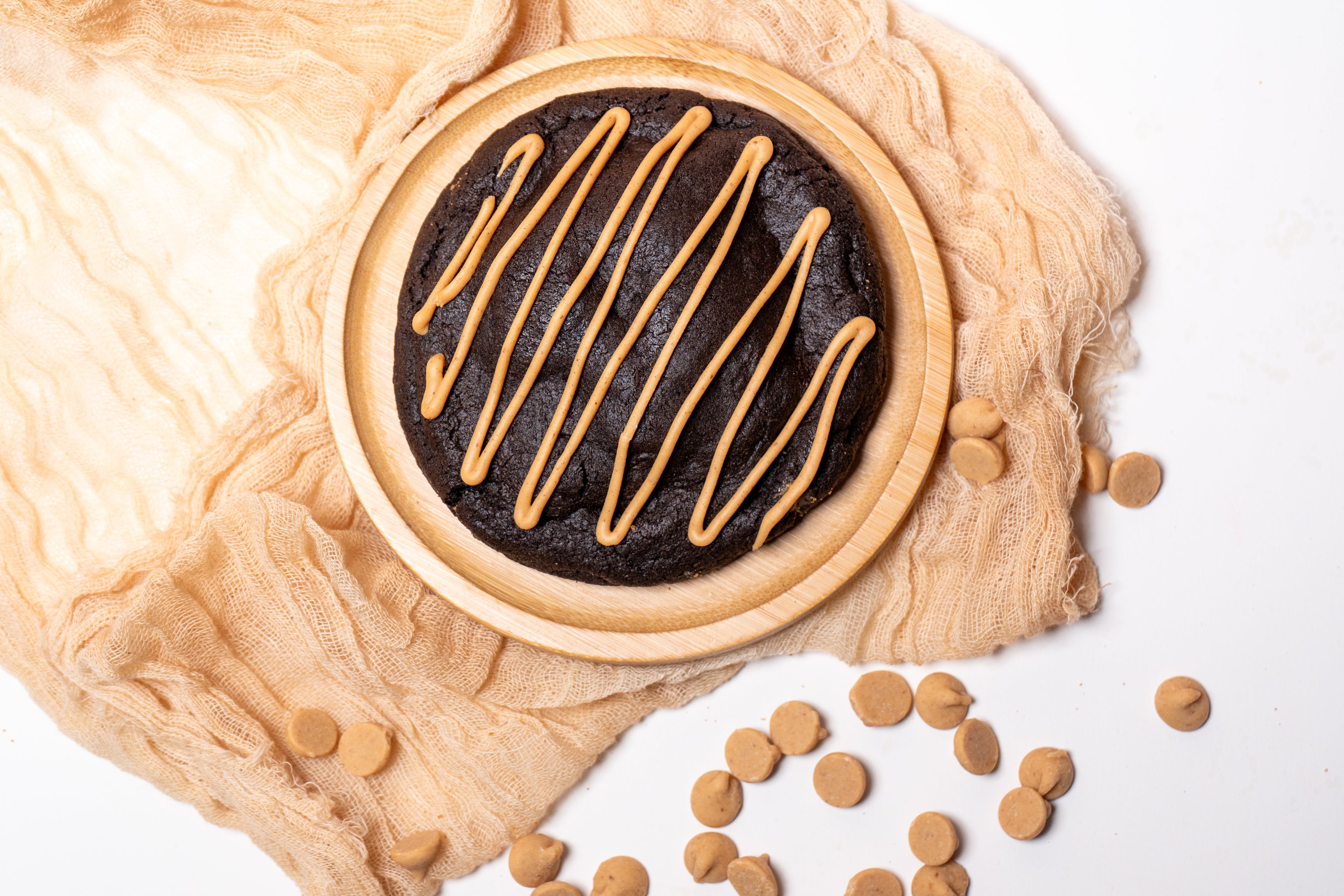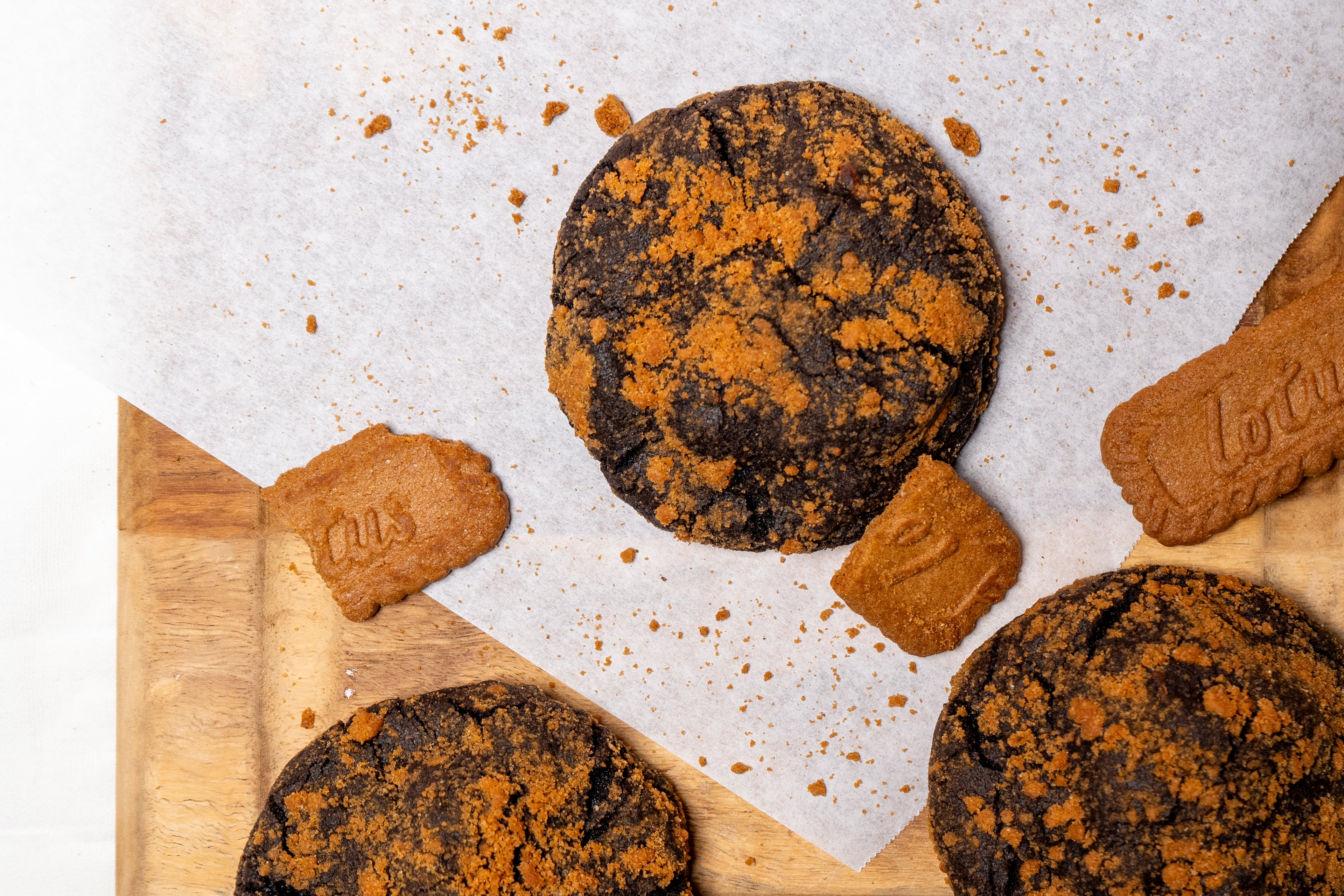 This chocolate base cookie is exploding with flavors of dark chocolate and caramel. With Biscoff cookie crumbs packed on the outside as well as throughout the dough, the exterior is left crispy and the center soft and overflowing with Dulce De Leche caramel sauce.