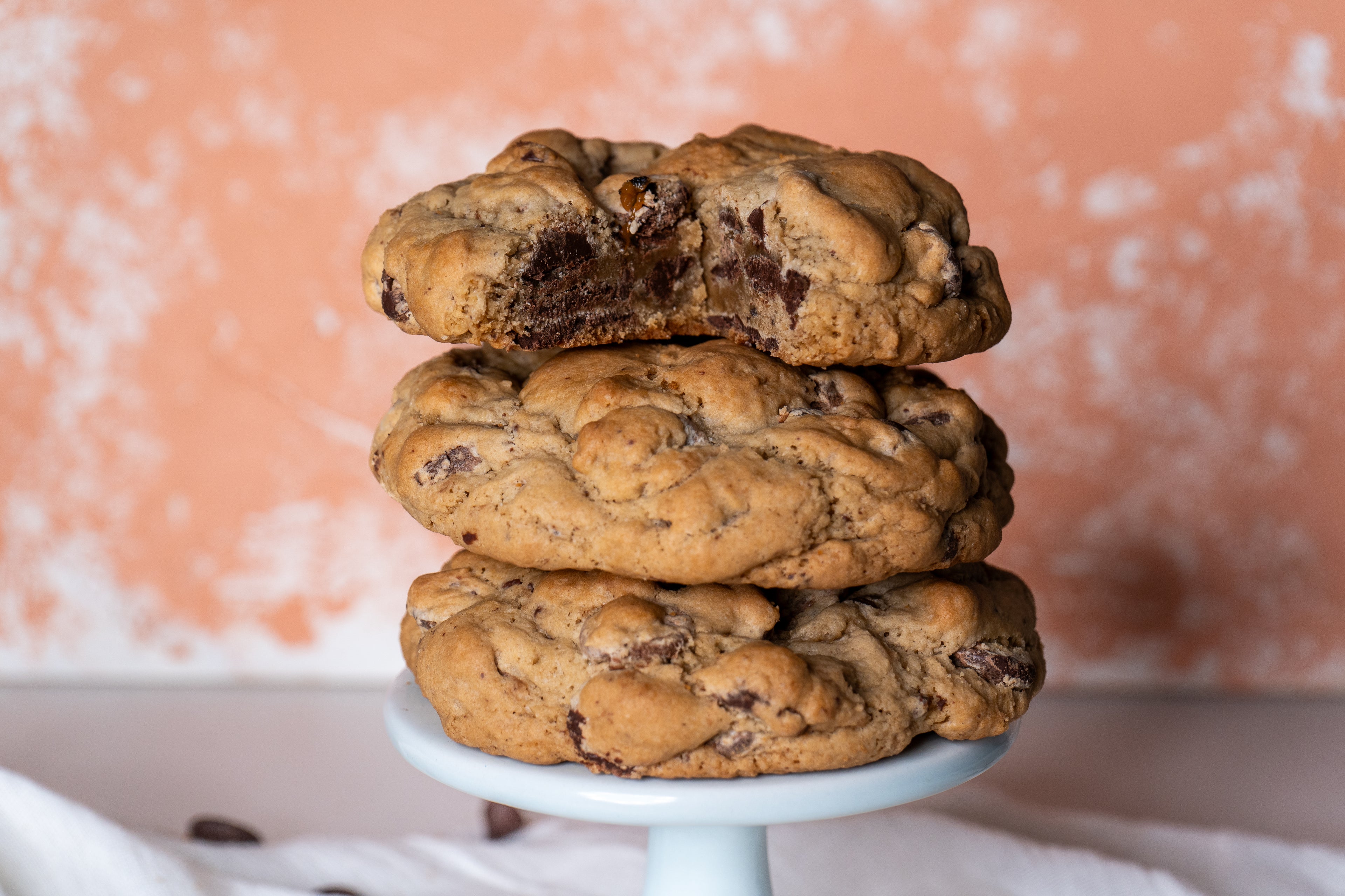 Nesse's is our cookie version of a Reese's peanut butter cup. With a dark chocolate cookie base, we added Reese's peanut butter chips mixed into the batter to add some sweetness, which compliments the richness of the peanut butter stuffed center.