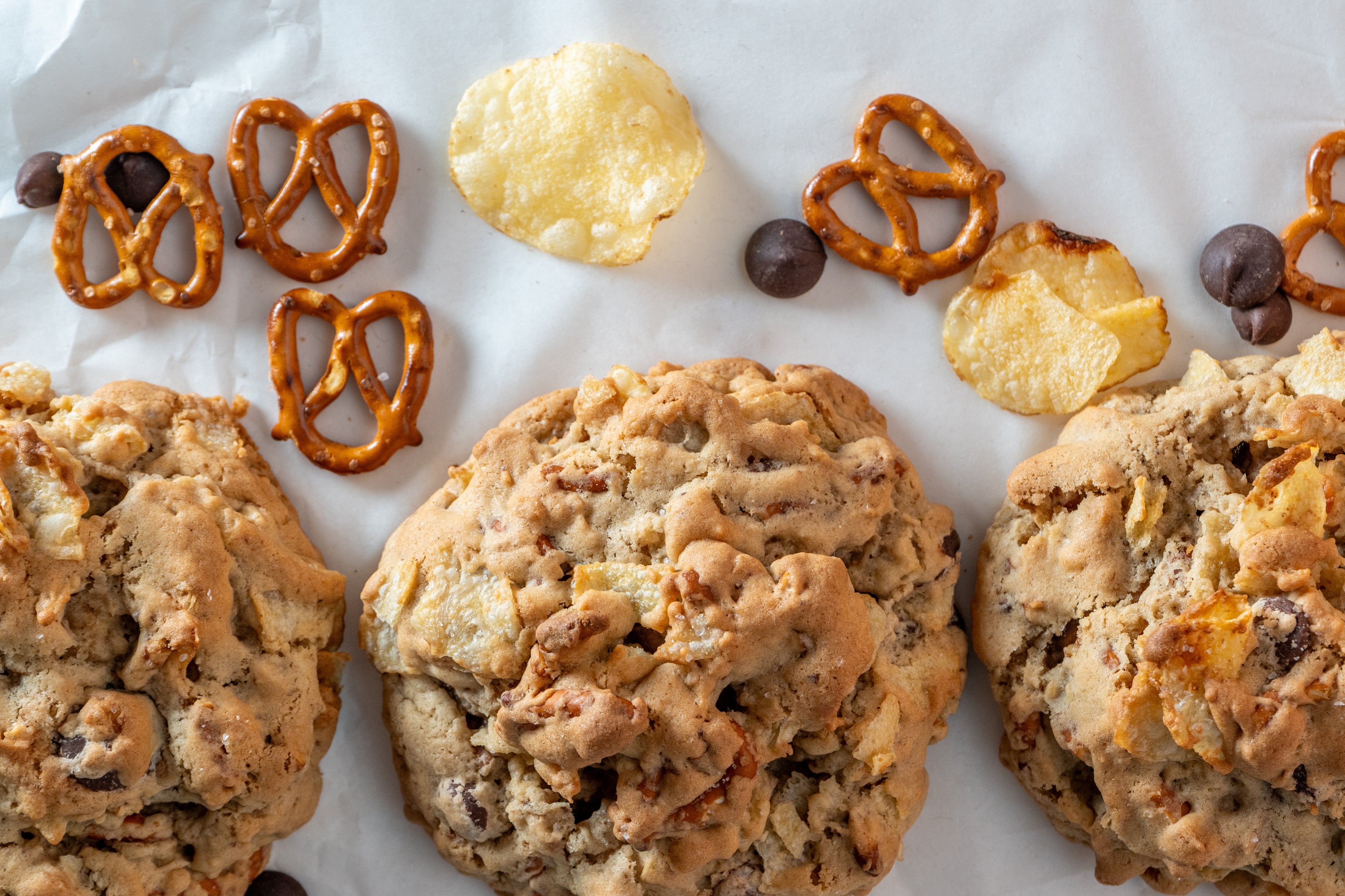 The Road Trip cookie was created for those who can't decide between salty and sweet. Why choose when you can have both? Packed with potato chips and pretzels, and just enough chocolate chips for a touch of sweetness, this is the perfect cookie to snack on for any trip.